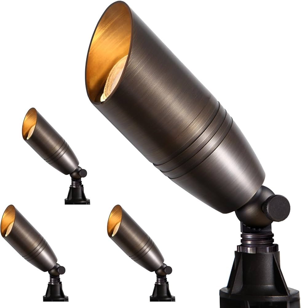 Classic outdoor spotlights with a bronze finish, designed for clean, modern spaces.